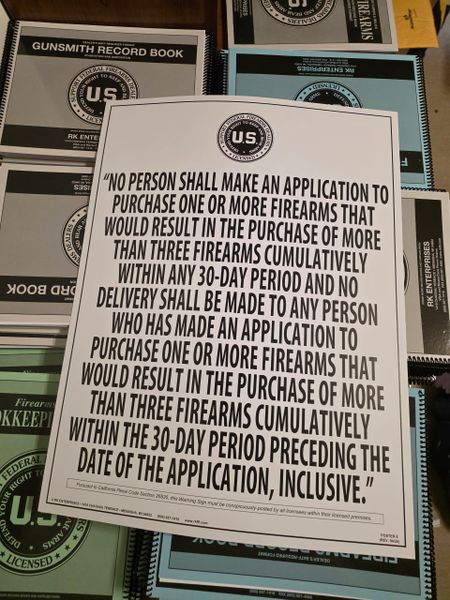 AB-1078 REQUIRES A NEW SIGN TO REPLACE THE #8 SIGN THAT USED TO REFERENCE ONE GUN PER MONTH, NOW SHIPPING!!!